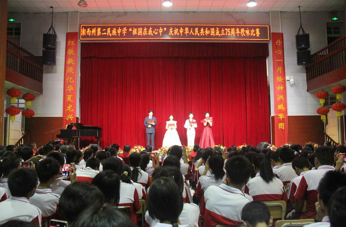 | 9月29日晚6点30分,我校全体教职工及高一年级全体学生齐聚大礼堂举行“祖国在我心中”庆祝中华人民共和国成立75周年歌咏比赛,行政教师组、高一年级教师组、高二年级教师组、高一年级13个班级、高一年级艺术班、高二年级13个班级、高二年级艺术班等31个集体参加这次比赛。 校党委书记田正富为活动致辞。他介绍了歌唱国歌的意义及学校取得的成绩。他指出,传唱国歌,是颂扬团结的蓬勃力量,厚植州二民中人爱国的炽热情怀;是讴歌新中国成立来取得的辉煌成就,诠释州二民中人热爱祖国、心向祖国的热忱。他希望全体教职工们铭记中华人民共和国的奋斗历程,培养爱国主义精神,突出艺体特色教育,以饱满的热情、奋斗的姿态,聚精会神抓质量,一心一意谋发展,把学校建设得更加美好、更加灿烂、更加辉煌。 本次大赛,高一年级和高二年级等26个班级演唱规定曲目《国歌》,各班同学身着整齐的服装,精神饱满,用嘹亮的歌声、铿锵有力的旋律感染着在场的每一个人。 高一年级艺术班、高二年级艺术班、行政教师组、高一年级教师组、高二年级教师组等5个集体演唱一首规定曲目和一首自选曲目。高一艺术班的同学们合唱的《国歌》《如愿》,真挚的歌声,深情的告白,抒发了热爱党、热爱祖国的情怀;高二艺术班的同学们合唱的《国歌》《天耀中华》,展现了新时代的活力与希望,传递了积极向上的力量。 行政教师组合唱的《国歌》《没有共产党就没有新中国》声部繁复,充满力量,表达了人民群众对中国共产党的深厚情感和坚定信念;高一年级教师组合唱的《国歌》《爱我中华》,精神抖擞,气势如虹,唱出了对祖国母亲诚挚的热爱;高二年级教师组合唱的《国歌》《歌唱祖国》,曲调优美,动人心弦,表达了对祖国的热爱以及对祖国未来的美好向往之情。 各参赛队各具匠心,有领唱、有个人朗诵、有集体朗诵、有手持五星红旗,歌声或甜美或铿锵,或轻柔或昂扬,以“声”载道,以“美”育人,诠释了州二民中人的爱国情怀,现场观众也被这激昂的民族正气深深打动,情不自禁地跟随合唱团一起深情吟唱起这些耳熟能详、历久弥新的旋律。 此次红歌合唱比赛不仅是一场音乐盛宴,一次爱国主义教育的生动实践,更是州二民中人为祖国75周岁华诞献上的一份寿礼。通过比赛,师生们更加深刻地认识到自己肩负的历史责任和使命,并以更加饱满的热情和昂扬的斗志,投身到学习和生活中,为祖国的繁荣富强贡献力量! 活动现场 校党委书记田正富为活动致辞 学生风采(一) (二) (三) (四) ![]() 行政教师组 ![]() 高一年级教师组 ![]() 高二年级教师组 合影留念 (初审:田玲 复审:刘征 终审:彭艳萍 责任编辑:祝东顺) |
