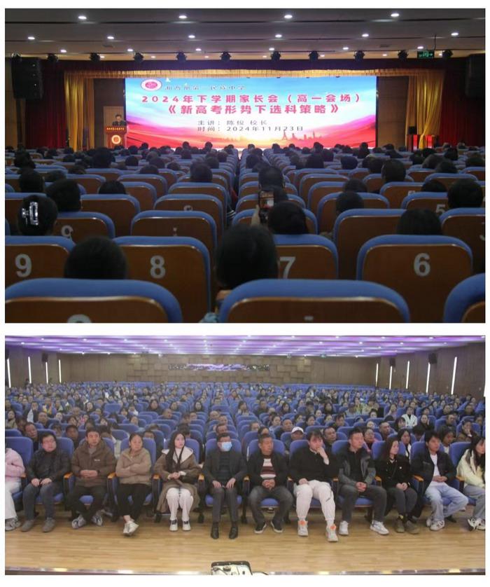 | 11月23日上午,我校举行2024年下学期家长会,家长会分主会场与分会场先后开展。校长陈俊、副校长郑昌贤出席主会场并发表重要讲话,高一、高二年级学生家长1000余人参加家长会。 高一年级主会场在多功能报告厅举行,由高一年级组长田芳蓉主持,校长陈俊发表讲话,首先,他对各位家长的到来表示热烈的欢迎,对家长们一直以来对学校工作的支持表达了诚挚的感谢。接着,他结合学校学生的实际情况为家长们作了题为《新高考形势下选科策略》的报告,详细介绍了学校今年高考情况、办学特色,以及选科策略等内容。他强调家长们在给孩子们选科的时候,一定要结合孩子自身的学科基础及学科的提升空间,兼顾孩子的兴趣和职业规划慎重做出 选择,切忌盲目跟风和片面追求。希望家校共育,师生同行,助力学生们度过充实且富有成果的高中生活。 高二年级主会场在大礼堂举行,由高二年级组长陈刚主持,副校长郑昌贤围绕高二年级学生呈现出来的基本特点和目前状况为家长们作了题为《抓住高二,就抓住了高考》的报告,他指出高二是承上启下的一年,也是衔接高一和高三之间过渡的一年,更是成绩分化的分水岭,在学校为学生们为高考打下基础,积极实施应对举措的同时,也希望家长们对孩子们多关注,少干涉、勤沟通,善引导、重陪伴,创环境、配合学校,形成合力,助力孩子们抓住高二,在高考中取得优异的成绩,开启他们美好的人生篇章。 在各个分会场中,各班班主任通过图片展示、视频播放、数据对比等形式,直观地向家长介绍了本班的基本情况,展示了学生们在校的日常表现、学习情况、班级管理等,并针对学生的学习习惯、行为习惯等方面问题,给予了家长一些具体的、有针对性的家庭教育建议。班主任们的诚挚分享与细致解答,如春风细雨,接近了家校之间的距离,加深了彼此之间的理解。 随后,学生代表、家长代表纷纷发言,学生代表分享了自己的学习方法和学习经验,家长代表分享了他们在家庭教育中的心得与体会,有的家长讲述了如何陪伴孩子克服学习难关,有的则介绍了如何培养孩子的自主学习能力和时间管理能力。这些宝贵的经验分享,不仅为其他学生和家长提供了借鉴,也促进了家校之间的智慧碰撞。 家校携手,共育未来。此次家长会,不仅加强了家校之间的沟通与联系,也为学生的成长与发展注入了新的活力。我校将继续用心教书,用情育人,秉持“面向全体学生,提高整体素质,着眼未来社会,培养优秀人才”的办学理念,为党育人,为国育才。 ![]() 高一主会场现场 ![]() 高二主会场现场 校长陈俊作了题为《新高考形势下选科策略》的报告 ![]() 副校长郑昌贤作了题为《抓住高二,就抓住了高考》的报告 各班主任向家长介绍本班基本情况(一) (二) (三) 家长代表发言(一) (二) (三) 学生代表发言(一) (二) |