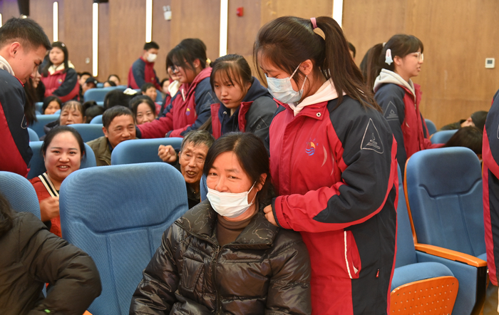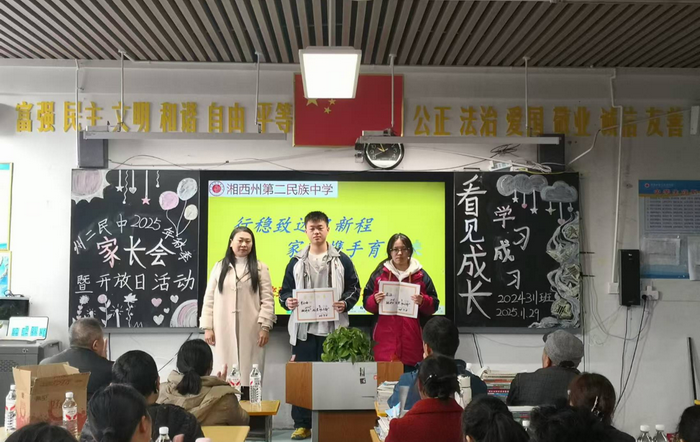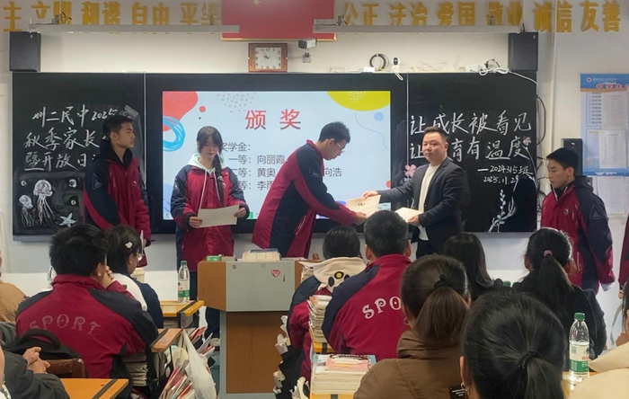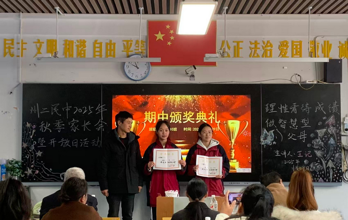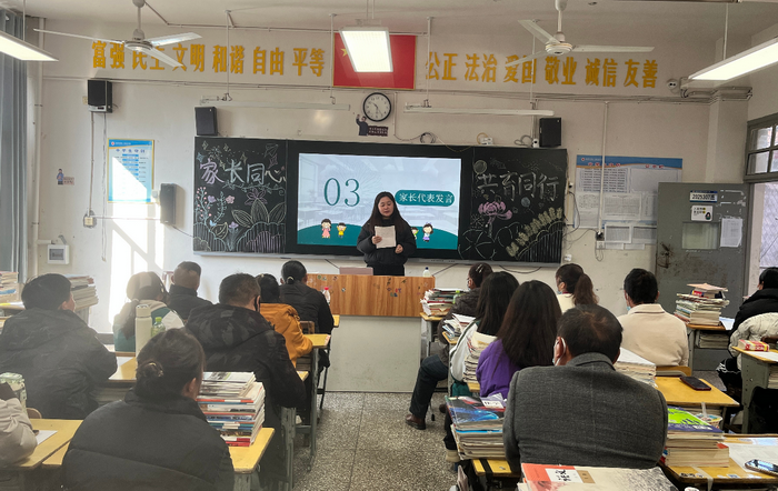 各班学生代表分享了学习感悟与成长体会,真挚的话语展现了青春的风采与思考。家长代表的发言,则道出了协同育人的心声与期盼。特别设置的“感恩信”环节,孩子们用文字向父母表达深切感恩,将现场气氛推向高潮,不少家长为之动容。最后,家长们在教室内的合影,定格了这温馨而富有意义的一天。