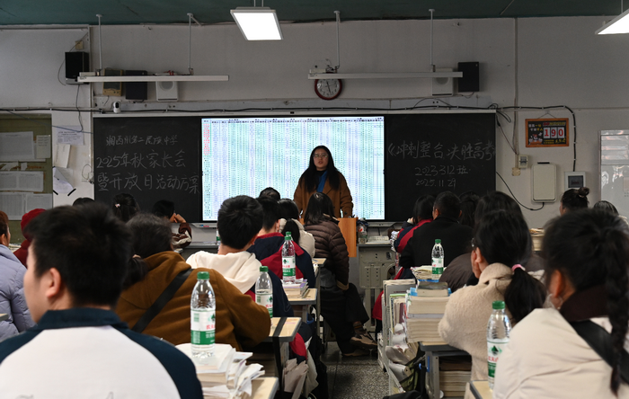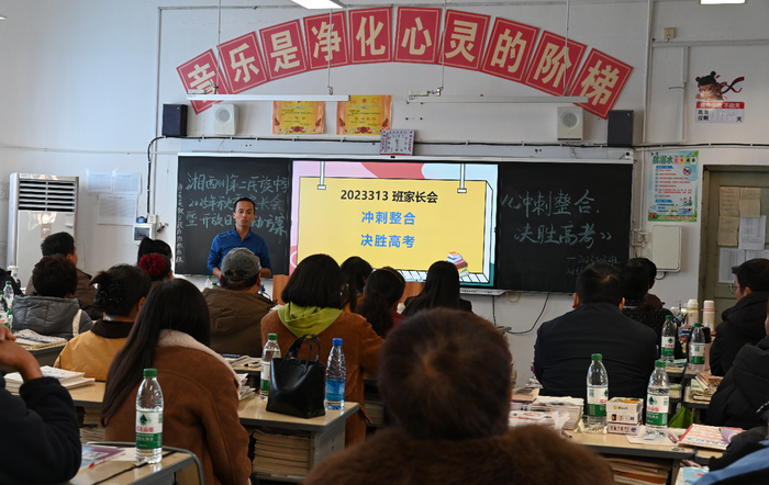 九时整,高一、高二年级组家长齐聚塑胶操场,共话青春成长,共筑奋进之路。党委书记谢彪出席会议并作讲话,校长田庭椿主持会议。党委书记谢彪在讲话中,以"教育是一场温暖的守望,更需要同心同向的协作"开篇,与家长们展开深入交流。他分享了学校的育人成果:本科上线298人,上线率达53.1%;教师们在各级教学竞赛中屡获佳绩;学子们在艺术、体育、文学等各类竞赛中捷报频传。面对成绩,他探讨了当前教育面临的挑战——学业压力、青春期心理变化、信息时代诱惑等。基于此,他提出三点希望:希望家长做孩子的"心态调节器",以理性视角看待成长;做"成长引路人",以智慧陪伴参与教育;做学校的"教育合伙人",以同向发力助力发展。最后,他以"孩子是风筝,学校是风,家庭是线"的生动比喻,描绘了家校协同的美好愿景,呼吁全体教育工作者以"功成不必在我"的胸怀和"功成必定有我"的担当,携手家长静待花开。 十时整,多功能报告厅内,党委书记谢彪,校长田庭椿,副校长兼纪委书记彭艳萍,副校长鲁帮明,党委委员刘征、田际侦、田正敏等校领导与全体高三学子及家长共聚一堂,共话成长赋能,共筑美好未来。 会上,党委书记谢彪作题为“书写奋斗青春史诗”的励志报告。他在报告中深情回顾了同学们三年来的成长点滴,从青涩入校到如今笃定前行,肯定了大家的坚持与付出。他勉励高三学子在最后191天的冲刺阶段,稳住心态、找准方法、锚定目标,将焦虑转化为突破的动力,将疲惫视为攀登的证明。报告的最后,谢彪书记以“苔花如米小,也学牡丹开”鼓励全体同学,坚信每一份努力都将在高考舞台上绽放光芒,书写不负韶华的青春篇章。 随后,田庭椿校长作总结讲话。他围绕“坚持、感恩、信心”三大核心关键词,强调此次家长会满含温度、精准契合活动主题,既传递了学校对同学们的关切,也凝聚了家校同心的力量,同时对各位家长的拨冗莅临表示衷心感谢。