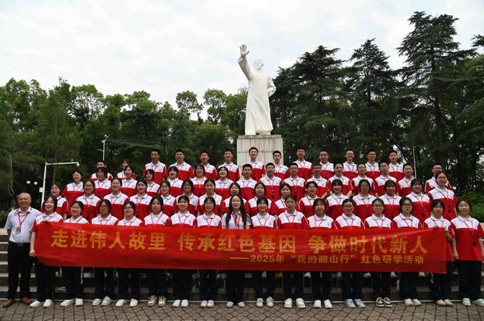 | 5月13日至14日,我校组织高一年组全体师生赴韶山思政教育研学实践基地开展“我的韶山行”红色研学活动。副校长郑昌贤、副校长田庭椿和党委委员李才卓带队参加活动,通过实地探访、专题学习、互动实践等形式,引导学生感悟伟人精神、传承红色基因、汲取奋进力量、争做时代新人。 研学启动仪式上,副校长郑昌贤为高一年级组组长田芳蓉授旗,宣布出征命令,并预祝本次红色研学活动圆满成功。 副校长田庭椿讲述了此次活动的政治意义与教育价值。他指出韶山作为伟人故里和革命圣地,是开展德育教育的生动课堂,并要求学生们要感悟革命先辈的崇高理想与奋斗精神,厚植家国情怀;要严守交通、饮食、活动等安全规范,服从统一安排;要践行文明研学,爱护文物环境,以良好素养展现学校风采。 师生们首站抵达毛泽东广场举行开班仪式。全体同学身着统一校服,以最饱满的精神面貌,队列整齐地肃立在广场之上,向毛泽东铜像庄重地行鞠躬礼,表达对伟人的深切缅怀。学校代表迈着沉稳而坚定的步伐走向毛主席青年艺术雕像敬献花篮,全体师生手持菊花,秩序井然地绕铜像一周,以最虔诚的方式,向主席献上最崇高的敬意。学生代表领唱《没有共产党就没有新中国》,激昂的旋律骤然响起。接着,全体同学在领誓人的带领下,高举右拳,齐声宣誓,誓言字字千钧、掷地有声,表达了新时代少年满腔热血的报国情怀,整个广场沉浸在庄严肃穆的氛围之中。 在专题思政课《恰是风华正茂》与纪录片《走近毛泽东》学习过程中,同学们通过珍贵影像和史料,回溯了毛泽东同志从“孩儿立志出乡关”到“指点江山”的成长过程,深刻领悟到了“全心全意为人民服务”的思想精髓。 走进韶山毛泽东同志纪念馆,同学们跟随讲解员的脚步,通过讲解员对历史文物和文献资料的详细解读,深入了解了毛泽东同志波澜壮阔的一生。从韶山冲的少年,到为民族独立和人民解放不懈奋斗的领袖,毛泽东同志的每一段经历都让同学们深受触动,仿佛穿越时空,与伟人进行了一场跨越历史的对话。 在毛泽东同志故居,同学们怀着崇敬之情,参观了伟人曾经生活和学习的地方。简陋的生活设施,却孕育出了伟大的革命理想,让同学们深刻体会到了毛泽东同志在艰苦环境中依然坚持追求真理、心怀天下的高尚品格。 在毛泽东青年塑像公园里,一堂以“学伟人读书精神”为主题的户外课程精彩开讲,同学们瞻仰青年毛泽东意气风发的塑像,感受伟人青年时期的蓬勃朝气,聆听老师讲述毛泽东同志在煤油灯下刻苦攻读的故事。感人至深的故事,不仅展现了伟人对知识的执着追求,更引导同学们深入思考读书的意义和价值,激励大家珍惜当下的学习机会,努力提升自己。 随后,一堂以“家国情怀和艰苦奋斗”为主题的课程在韶山烈士陵园开启。同学们倾听先烈们的英勇事迹,深刻领悟到了毛泽东同志将个人命运与国家命运紧密相连的伟大情怀,以及在革命斗争中不畏艰难、勇往直前的奋斗精神。互动讨论环节中,同学们踊跃发言,纷纷表示要以“人生无处不青山”的伟大志向, 做勇担使命、复兴民族的时代新人。 活动尾声,各班召开红色主题班会,同学们争相分享研学感悟。一名学生说道:在毛主席的成长经历中,我领略到了伟人心怀民族,敢于拼搏,甘于奉献的精神;在毛主席的感人故事中,我看到了革命先烈的伟大革命精神;在毛主席的光辉事迹中,我明确了努力学习、报效祖国的深刻意义。 此次韶山研学之旅,既是一次触摸历史的寻根之行,更是一堂培根铸魂的思政大课。同学们在追寻伟人足迹的过程中,深刻领悟到了红色精神的内涵,收获到了成长和启迪。相信在未来的日子里,他们将带着这份对伟人的敬仰和对红色精神的传承,在学习和生活中以伟人为镜,奋勇前行,为实现中华民族伟大复兴的中国梦贡献青春力量。 ![]() 副校长郑昌贤为高一年级组长田芳蓉授旗 ![]() 副校长田庭椿讲述了此次活动意义与价值 ![]() 全体同学在领誓人的带领下齐声宣誓 ![]() 专题思政课 ![]() 韶山毛泽东同志纪念馆 ![]() 户外课程精彩开讲,同学们踊跃发言 ![]() 合影留念(一) ![]() (二) ![]() (三) ![]() (四) (初审:田玲 复审:刘征 终审:彭艳萍 责任编辑:祝东顺) |