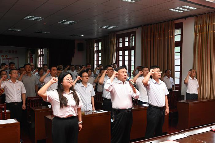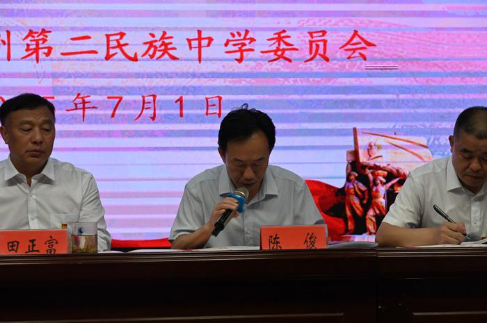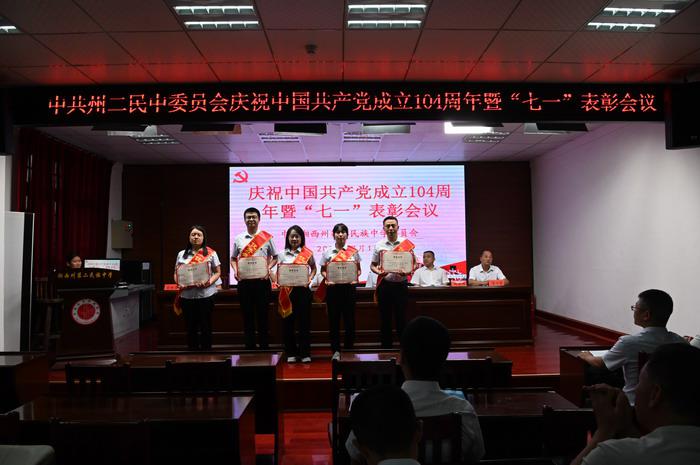 | 7月1日晚,为庆祝中国共产党成立104周年,激励广大党员担当作为,中共湘西州第二民族中学委员会在和平楼三楼会议室召开庆祝中国共产党成立104周年暨“七一”表彰会议。活动由校纪委书记彭艳萍主持。 誓言铿锵映初心,点评寄语新征程 大会在庄严的国歌声中拉开帷幕。随后,全体与会党员面向党旗,校党委书记田正富领誓,重温入党誓词。铿锵誓言响彻会场,表达了不忘初心、牢记使命的坚定信念。 田书记在会上发表重要讲话。他代表校党委向全体党员、受表彰者、新党员和入党积极分子致以节日问候和祝贺。 田书记深情回顾了党的光辉历程和国家发展伟大成就,强调要从中汲取力量,坚定理想信念。他充分肯定了学校在党建、教育教学、师资队伍、校园文化等方面取得的显著成绩,并向全体教职工致谢。 同时对全体党员提出四点明确要求: 1. 坚定理想信念,做政治明白人。 2. 牢记初心使命,做学生引路人。 3. 勇于担当作为,做发展推动者。 4. 严格廉洁自律,做清正表率。 他勉励新党员发挥先锋模范作用,鼓励入党积极分子争取早日入党。田书记号召全体同志紧密团结在党中央周围,不忘初心,牢记使命,涵养“信仰之根”、夯实“忠诚之基”、筑牢“使命之魂”,以昂扬斗志和扎实作风,为实现中国梦、推动学校高质量发展努力奋斗! 表彰先进树标杆,榜样引领话担当 党委副书记、校长陈俊同志宣读《关于公布州直教体系统2024-2025年度先进基层党组织、优秀党务工作者和优秀共产党员评选结果的通知》和《中共湘西州第二民族中学委员会关于表彰2024-2025年度优秀共产党员、优秀党务工作者和先进党支部的决定》。在热烈的掌声中,11名优秀共产党员、3名优秀党务工作者以及先进党支部代表依次登台接受表彰。这份荣誉是对他们坚定信念、忠诚履职、在推动学校高质量发展中奋发有为的充分肯定。 表彰仪式后,新党员代表彭延勇同志满怀激情发言,表达了加入党组织的无上光荣与矢志奋斗的决心。优秀党务工作者代表余圣红同志、优秀党员代表沈思思同志则结合自身工作实际,分享了在党务和教育教学一线践行初心使命的感悟与实践,生动诠释了新时代共产党员的先锋形象与责任担当。 党课淬炼强党性,凝聚奋进新力量 与会党员共同观看了由中共湘西州第二民族中学第一支部精心制作的微党课《初心·讲台·使命:照亮青春前行的微光》。该党课生动展现了一线教育工作者坚守育人初心、勇担时代使命的动人故事。 此次大会,不仅是对先进党组织、党务工作者和优秀党员的高度肯定,更是为未来的工作指明方向、注入强大动力。参会党员们纷纷表示,将以受表彰的先进为榜样,牢记入党初心,坚定理想信念,立足本职岗位,勇担时代使命,以更加饱满的热情和更加昂扬的斗志,积极投身到各项工作中,为党和人民的事业不懈奋斗,以实际行动向党的104岁生日献礼。 (初审:田玲 复审:刘征 终审:彭艳萍 责任编辑:祝东顺) |